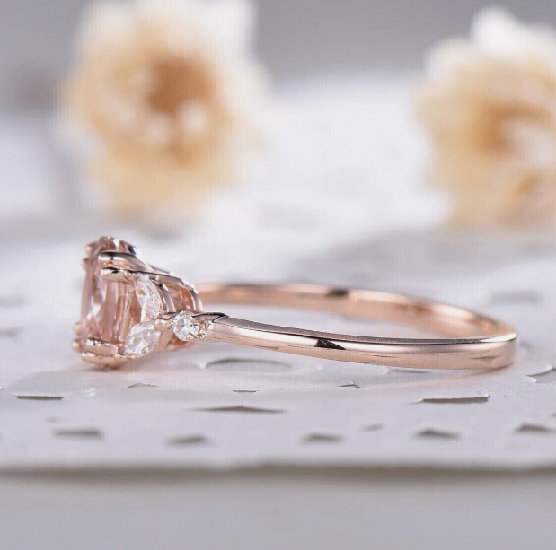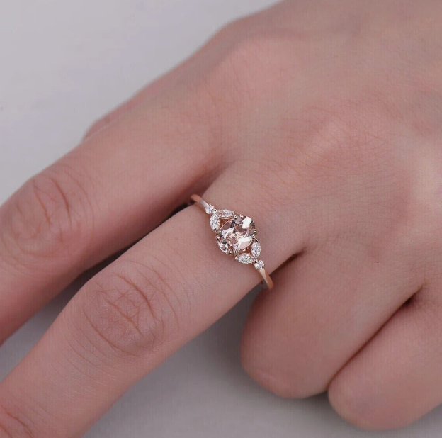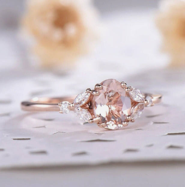 14k Rose Gold Plated 2.20 Ct Oval Cut Simulated Peach Morganite Engagement Ring