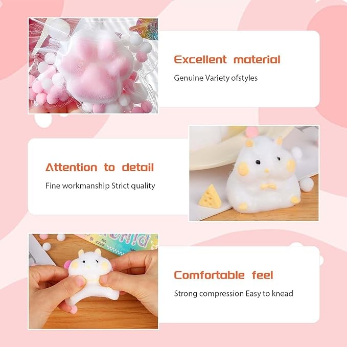 • 【Alleviating Anxiety】Our Taba Squishy Hamsters are perfect for relieving stress and anxiety, and squeezing the cute cat paws can release your inner stress and anxiety so you can enjoy the fun of squeezing and playing with them, or share with friends.