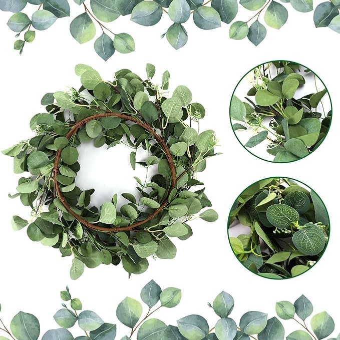 Brighten up your house: the 20 inch hanging wreath is beautifully crafted with artificial eucalyptus for an elegant modern farmhouse look, looks lifelike, can always keep fresh and stay in green for a long time, you can use it to decorate home, parties, carnival, living room, bedroom, office, home, wedding, or other important festivals, which will create a pleasant atmosphere for these places