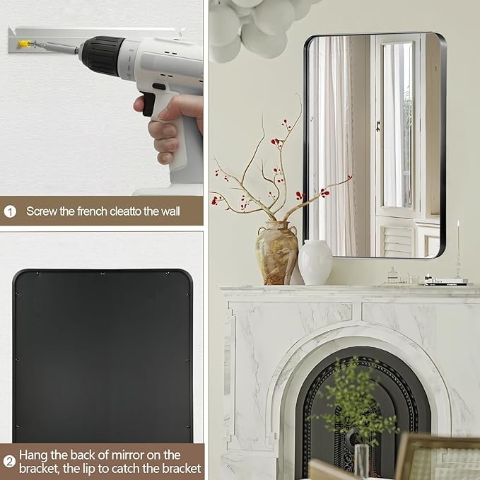 • 【Easy to Install】The black mirror for bathroom are easy to install, just select two holes, drive the screws into the wall and hang the mirror on the screws to complete the installation. The rectangle mirror can be hang horizontally or vertically depending on your preference, and the reflection of the wall mirror for bathroom also enhances the light in your home.