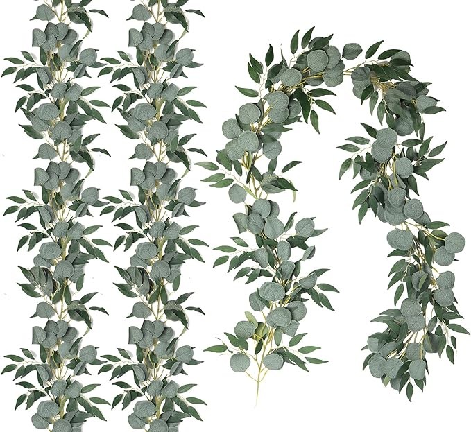 ?【Our After-Sales Service】 It is normal to receive enchanted eucalyptus willow vine with a slight odor, you can leave silk greenery garland in a ventilated environment for 1 or 2 days and it will smell better! Due to long transportation, some of our fake leaves may fall off. However, don' worry because leaves are detachable, you can fix them by yourself.