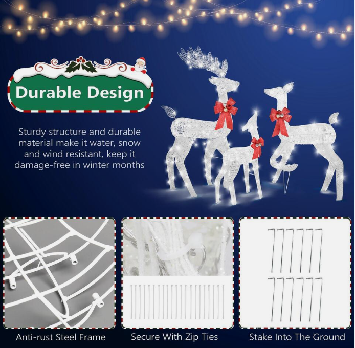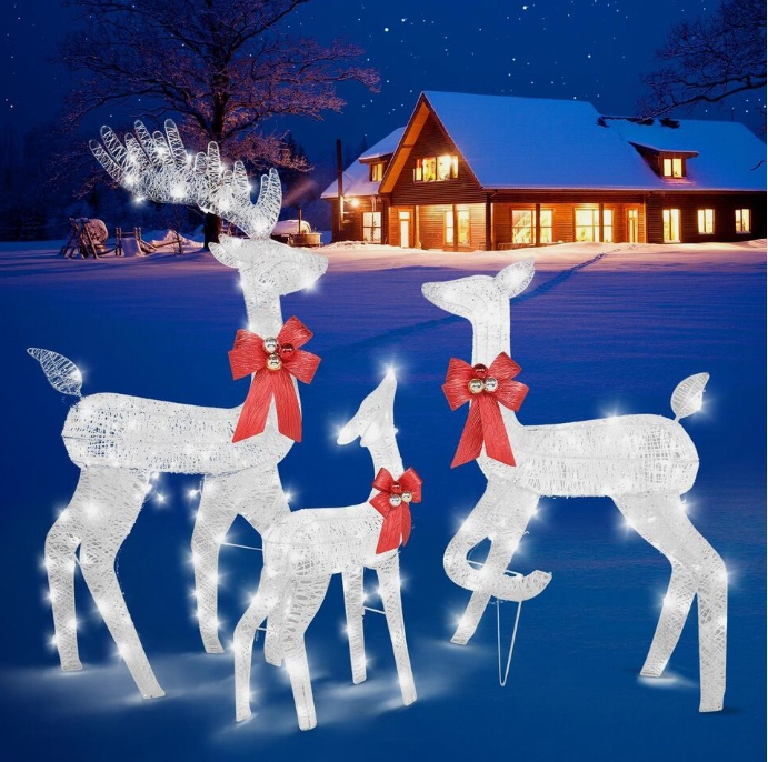 3-Piece Reindeer Family Lighted Deer Set for Indoor Outdoor Christmas Decoration