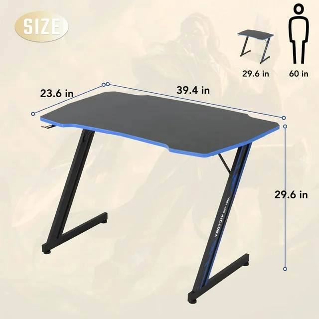 39 inch Z Shaped Ergonomic Gaming Desk PC Computer Desk with Headphone Hook for Game Players,Blue