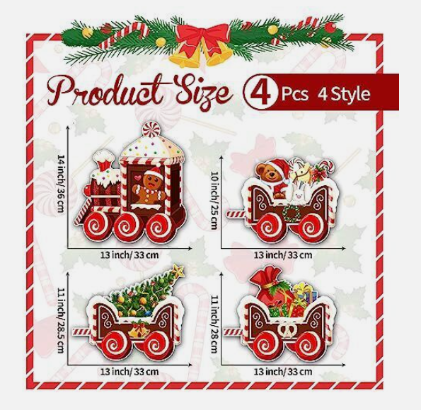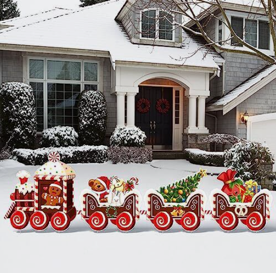 4 Pieces Christmas Decorations Outdoor Yard Train Lawn Sign Gingerbread Style