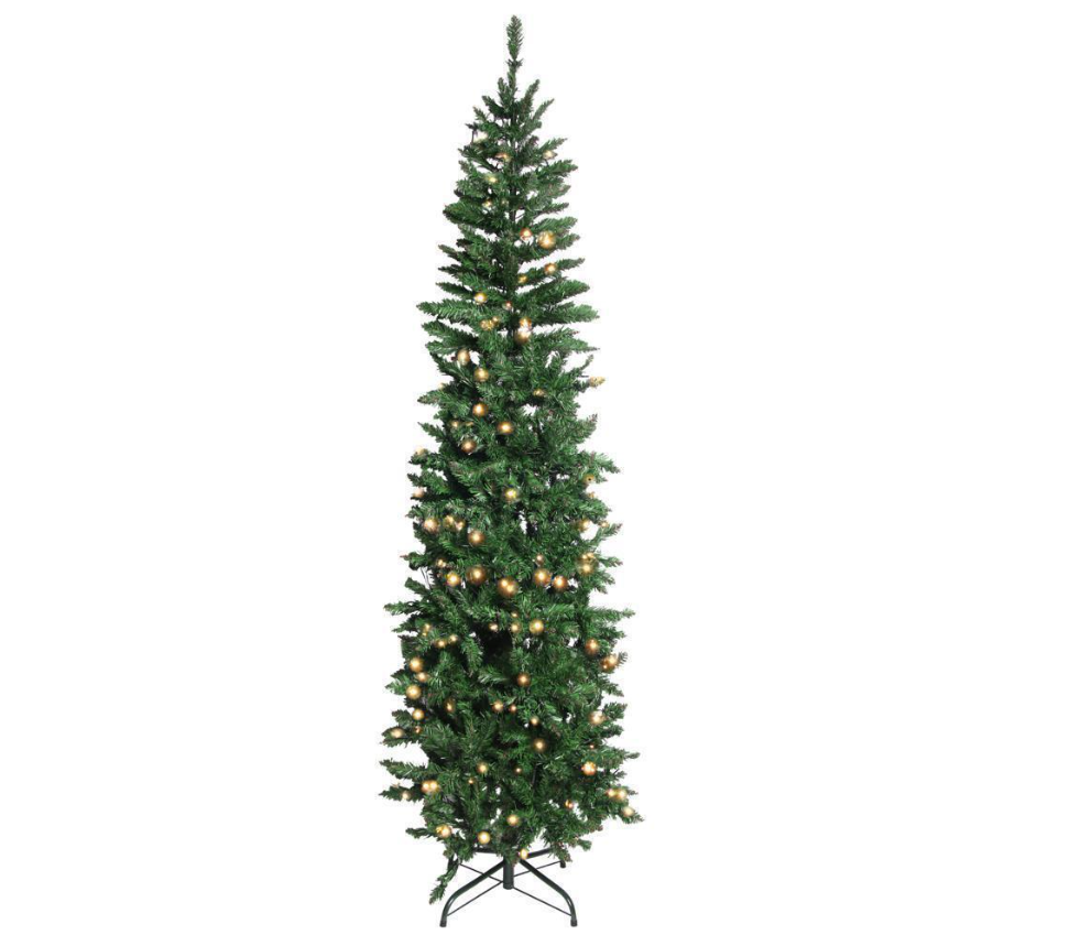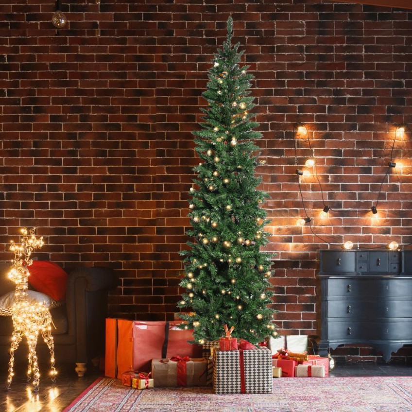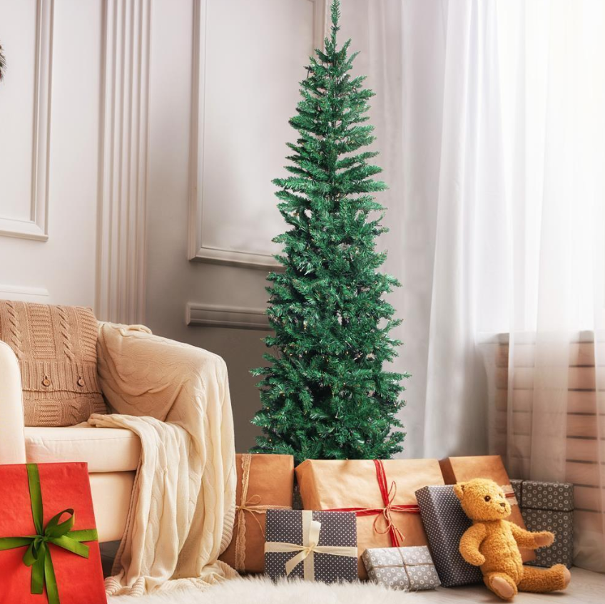 6.5Ft Pencil Christmas Tree Green Branches W/ Lights Holiday Decoration