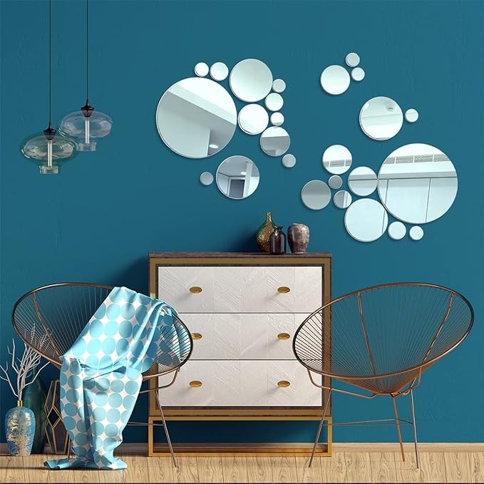 ?【Package Include】You will get 32 pieces decorative mirror wall stickers in round shape. The acrylic wall stickers have 4 different sizes: 15cm/5.9 inch (2 pieces), 8cm/3.1 inch (4 pieces), 6cm/2.4 inch (6 pieces), 3cm/1.2 inch (14 pieces).
