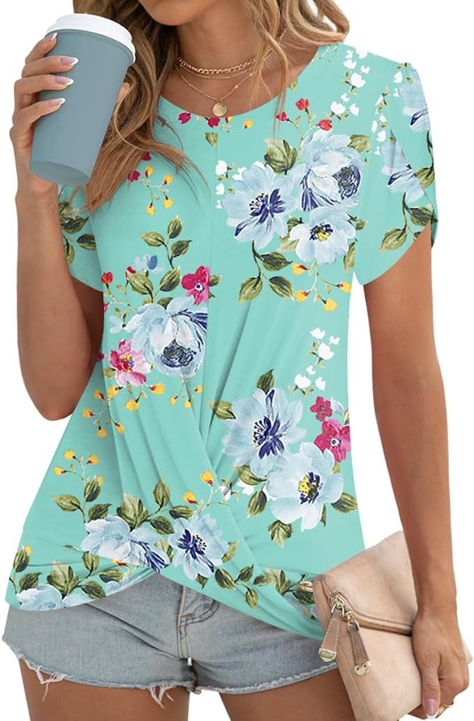 Addtoo Womens 2024 Summer Casual Tunic Tops Twist Front Blouse Short Sleeve Fitting Tshirt