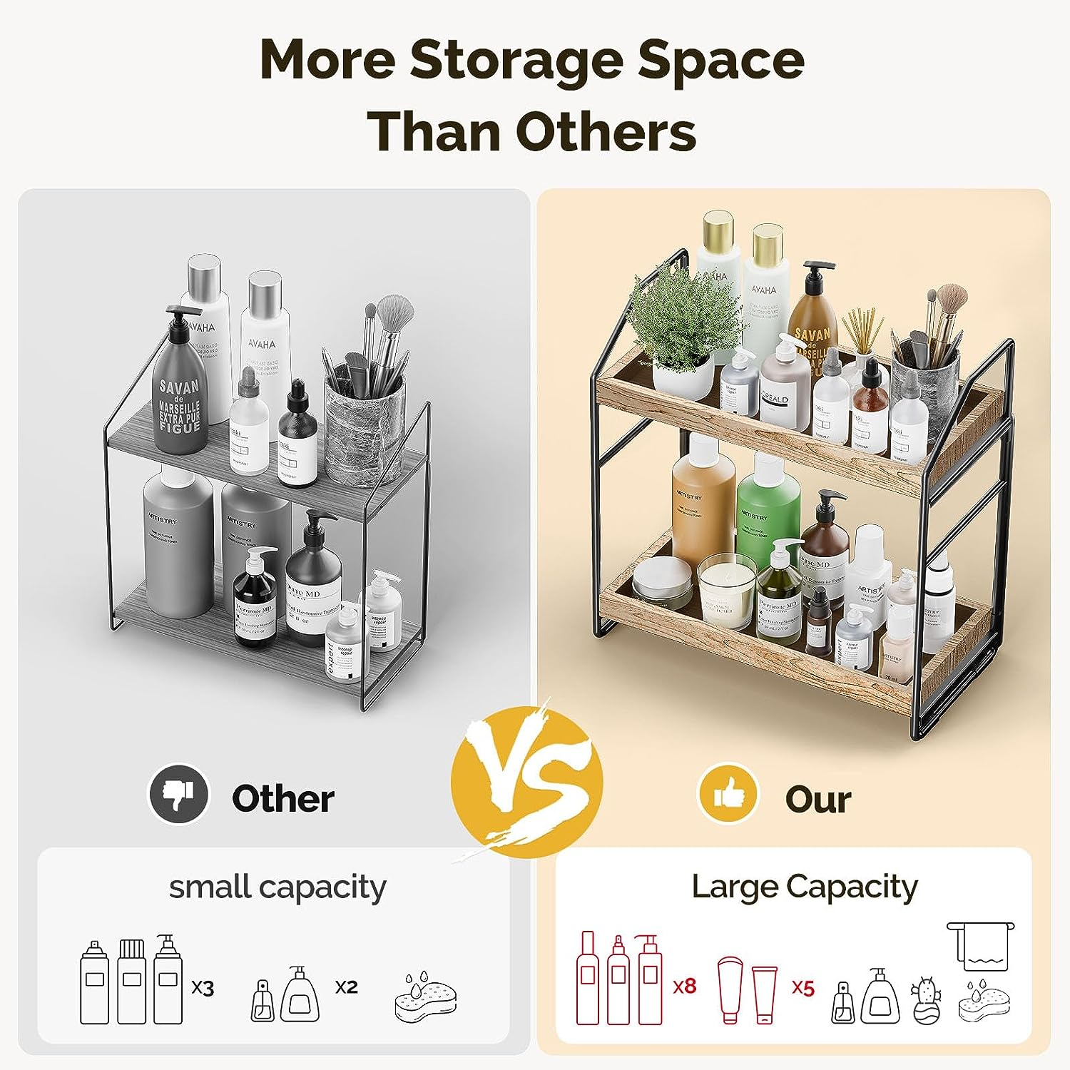 Adjustable 2-Tier Bathroom Countertop Organizer: No Screws Quick Installation So