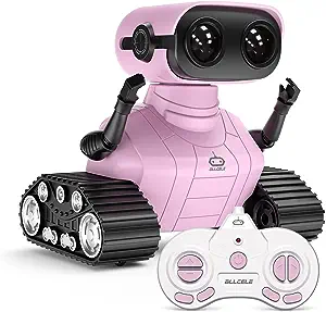 ?Multifunctional Robot: LED eyes will light up once you turn on the robot, you can also closed it or let it blink by remote; voice function - turn on the robot it will start talk with you in his own language, he can also sing 3 songs which can swich by remote; the tank tracks - let the robot move forward backward left and right,when it switch to demo mode it will begin dancing.