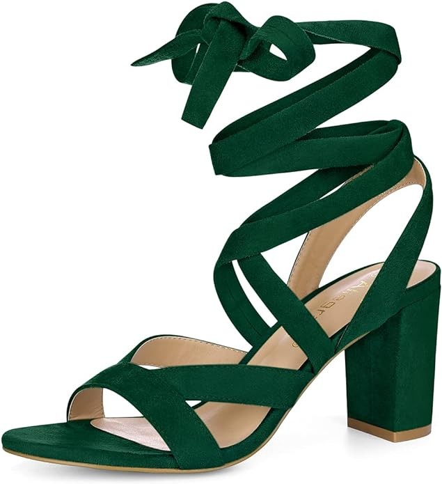 Allegra K Women's Crisscross Chunky Heel Lace Ups Sandals