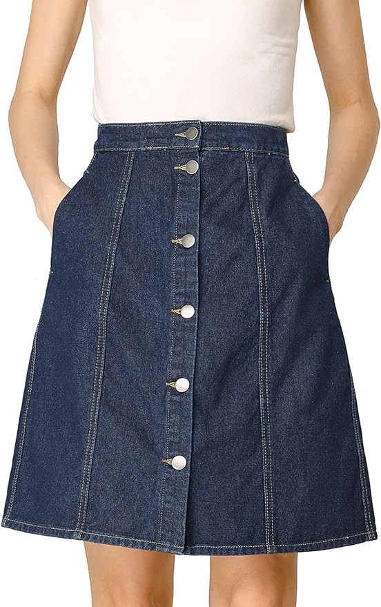 Allegra K Women's Denim Skirts Summer A-Line Short Button Down Jean Skirt