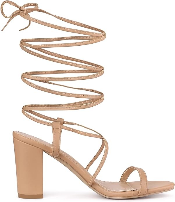Allegra K Women's Strappy One Strap Lace Up Chunky Heels Sandals