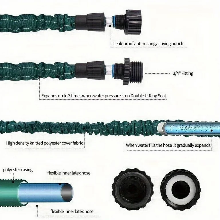 - Feature The garden hose is constructed of high-quality and durable materials with strong and leak-proof fittings.