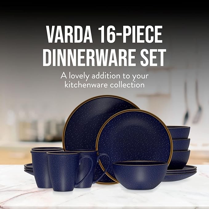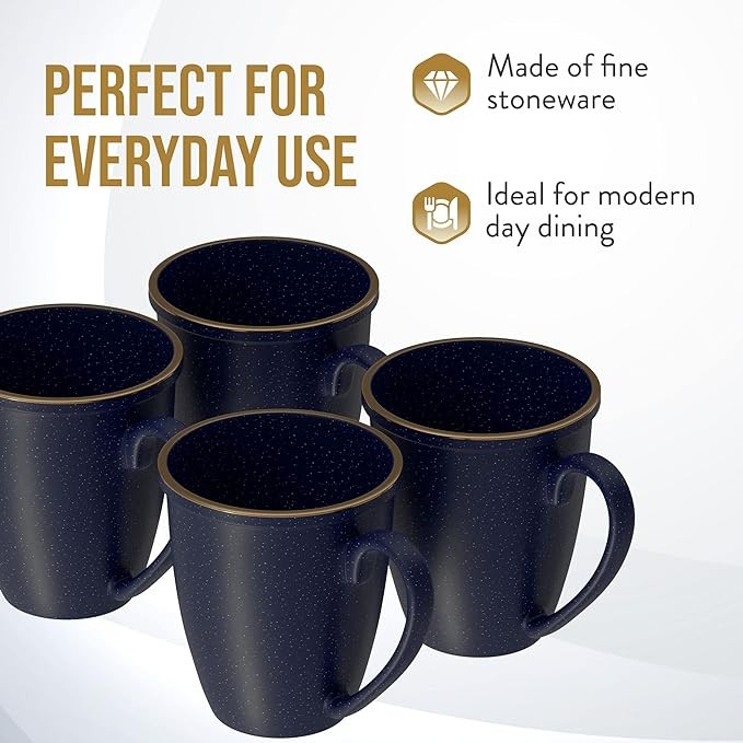 ROUND DINNERWARE SET – Gorgeous 16-Piece Collection Provides Full Dinner Service for Four People w/ 10.75 inch Dinner Plates, 8.5 inch Salad Plates, 6 inch Soup Bowls & 13 oz. Mugs