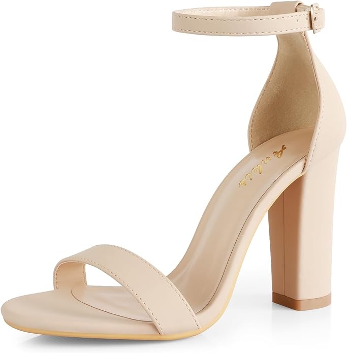 • Chunky heels: These nude high heels have a classic thick heel design, comfortable latex insole and perfect heel height, bring you all-day comfort. The adjustable straps provide customized support for your ankles.
