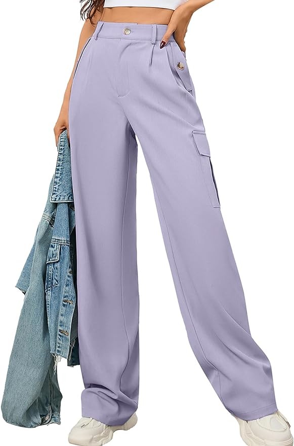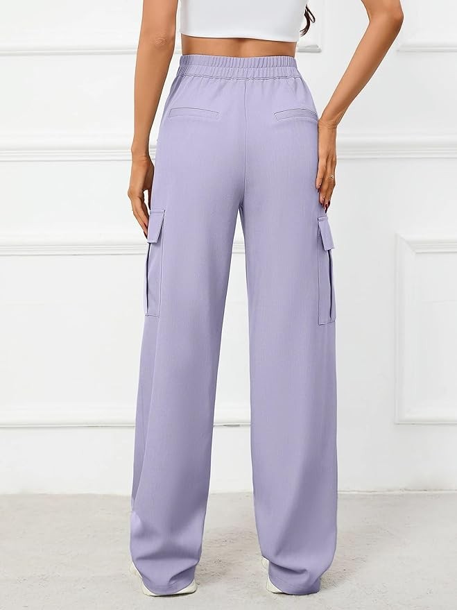 • Feature: These women cargo pants has 4 pockets, stretch elastic high waist, relaxed fit, zipper and button closure, joggers sweatpants, wide leg cargo pants, and the loose fit is ideal for casual or sporty.