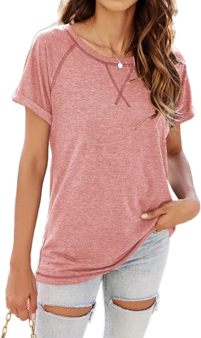 Features: Women's T-shirts, Casual short sleeve shirts for women, Loose fit crewneck raglan tshirts ,workout tops for women short sleeve. Year-round basics and the ideal go-to for daily wear.