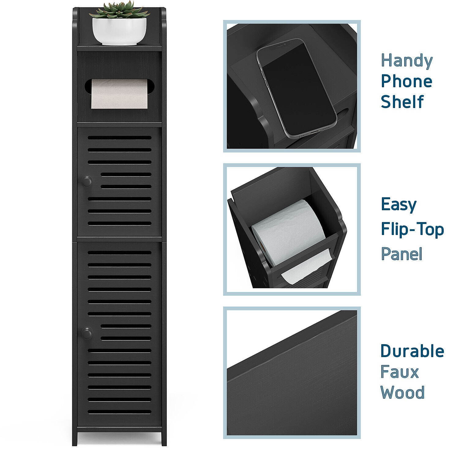 Bathroom Storage Cabinet Floor Standing Toilet Paper Organizer Shelves with Door