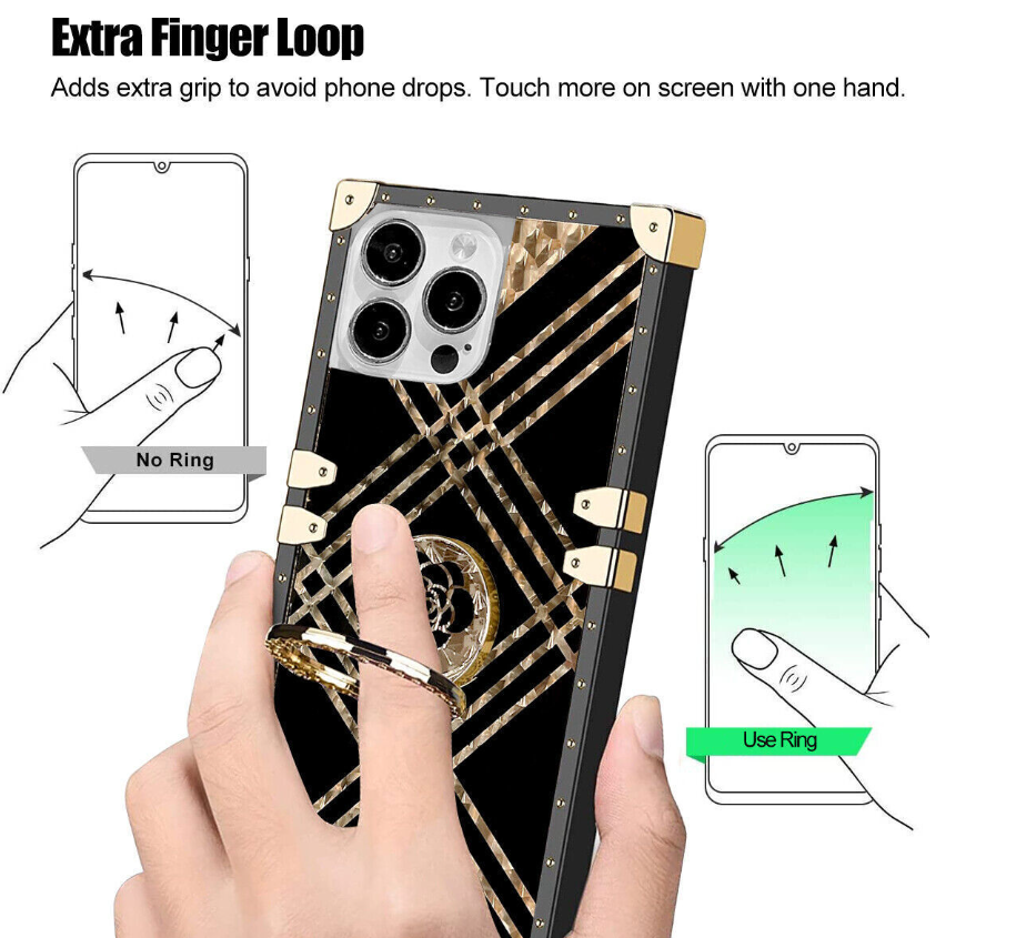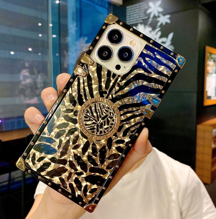 Bling Square Leopard Flower Phone Case For iPhone 14 13 12 11 Pro Max XR 8 7 SE