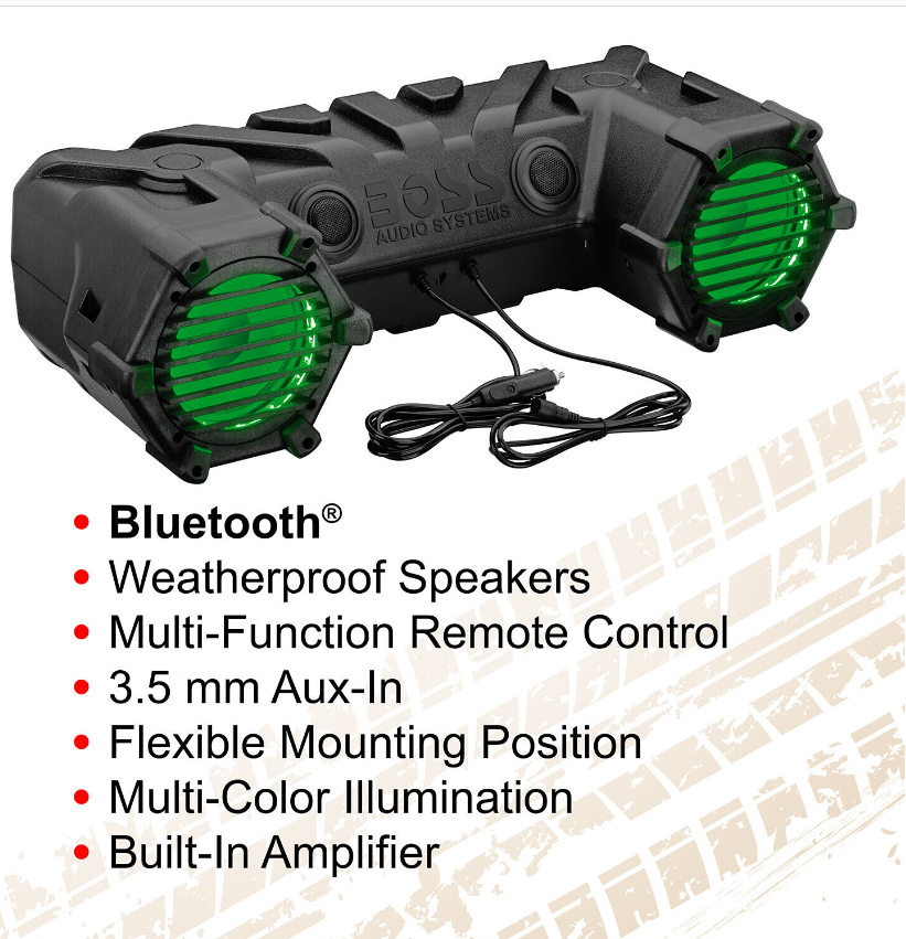 Take your music on the trails, tailgating or camping with the BOSS Audio Systems ATV30BRGB weatherproof powersports plug and play system.