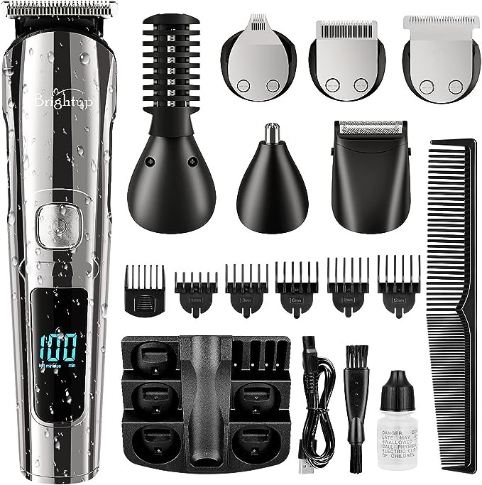 Brightup Beard Trimmer for Men - 19 Piece Mens Grooming Kit with Hair Clippers, Electric Razor, Shavers for Mustache, Body, Face, Ear, Nose Hair Trimmer, Gifts for Men, USB Rechargeable & LCD Display