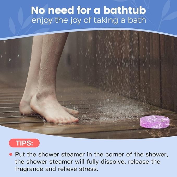 【Enjoy SPA at home】You just need to put the shower bombs aromatherapy for women in the corner,let the water splash on the shower tablets, it will emit its aroma.Each shower bomb will last 1-2 showers or more.