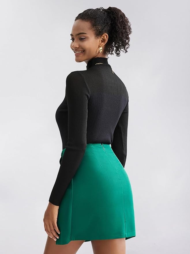Material: 96% Polyester+ 4% Spandex; Fabric is Soft and Comfortable. The asymmetrical split hem skirt style adds a touch of sophistication, while the zipper closure ensures a secure and comfortable fit.
