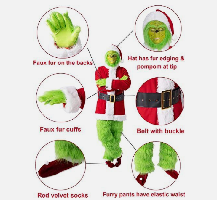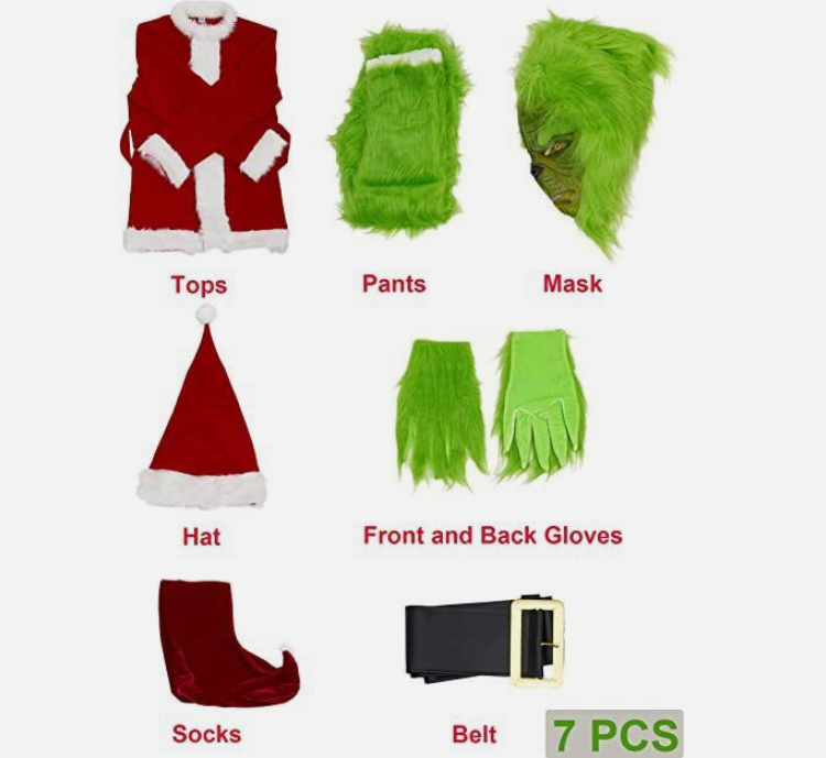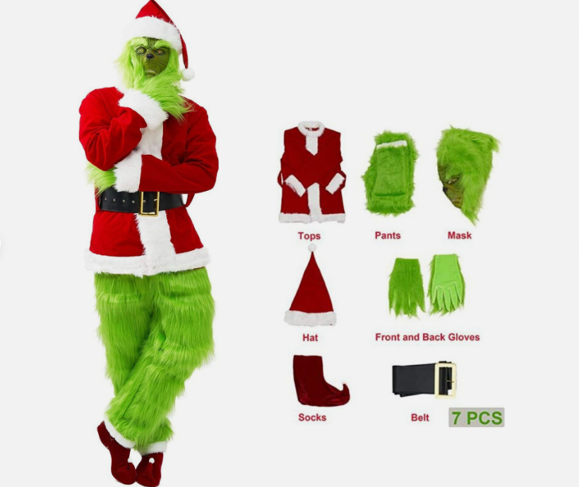 Christmas Green Monster Costume - 7PCS Adult Santa Suit Set Santa Claus Outfit