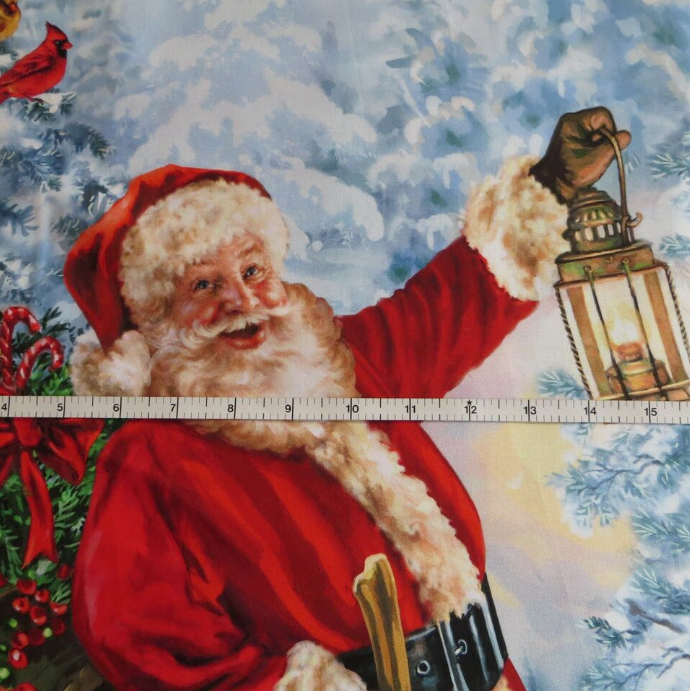 Christmas Santa & Forest Animals Cotton Panel