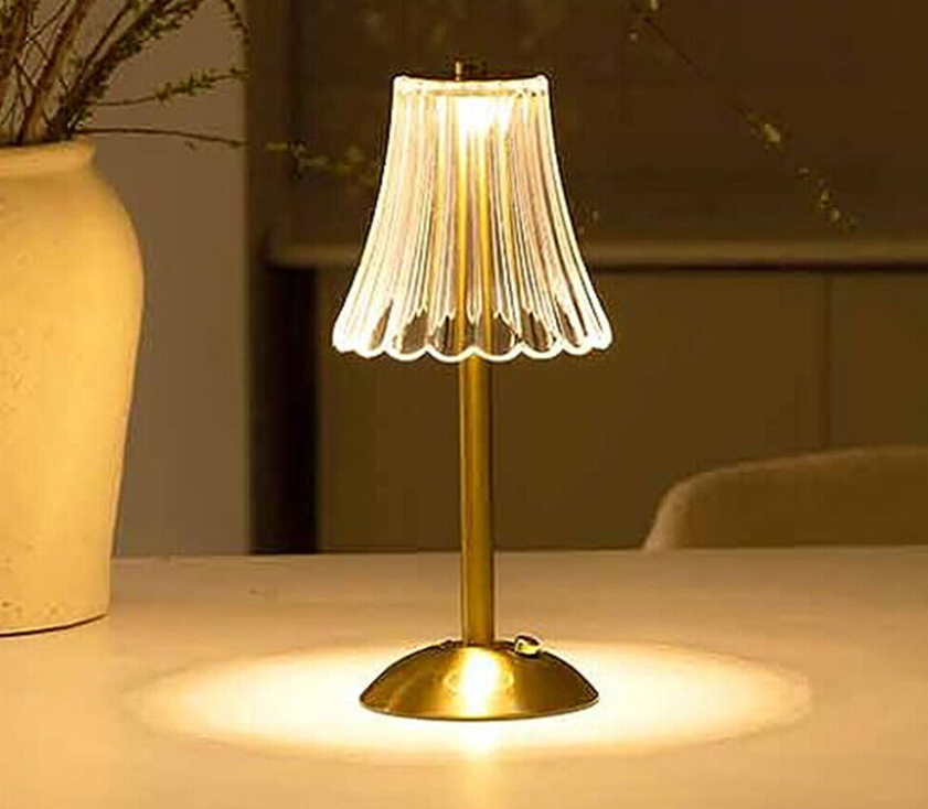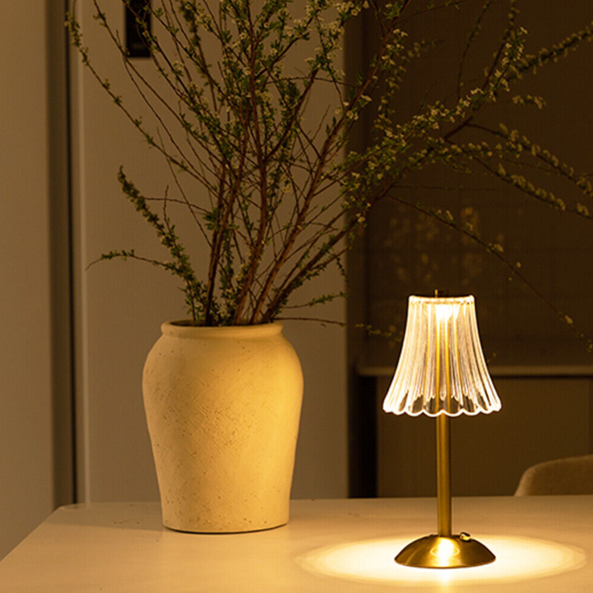 Inspired by 1950‘s lamps and a mood lighting which is soft and warm. Table lamp with a sturdy brass gold base topped with a white sturdy acrylic shade(not glass). 12'' Tall.USB charging,cordless table lamp can be take to anywhere you want.Such a lovely lamp to decor your coffee table,dining table,side table or outside patio.