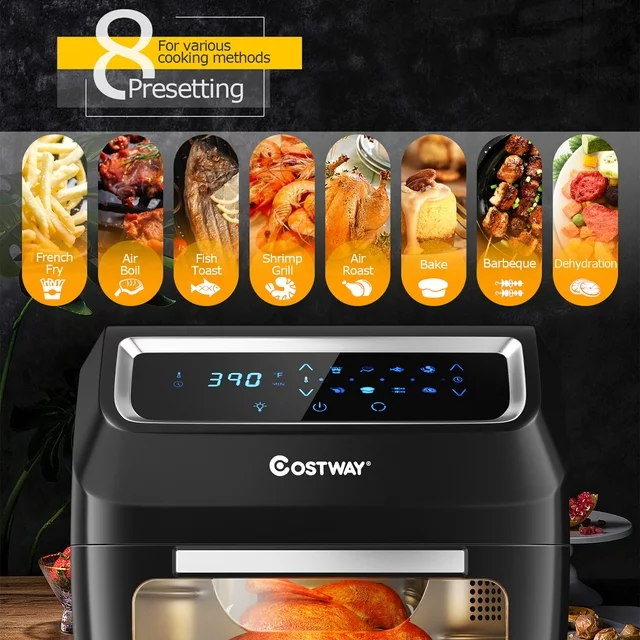 Costway 1700W Electric Air Fryer Oven 8-In-1 Rotisserie Dehydrator w/Accessories Black
