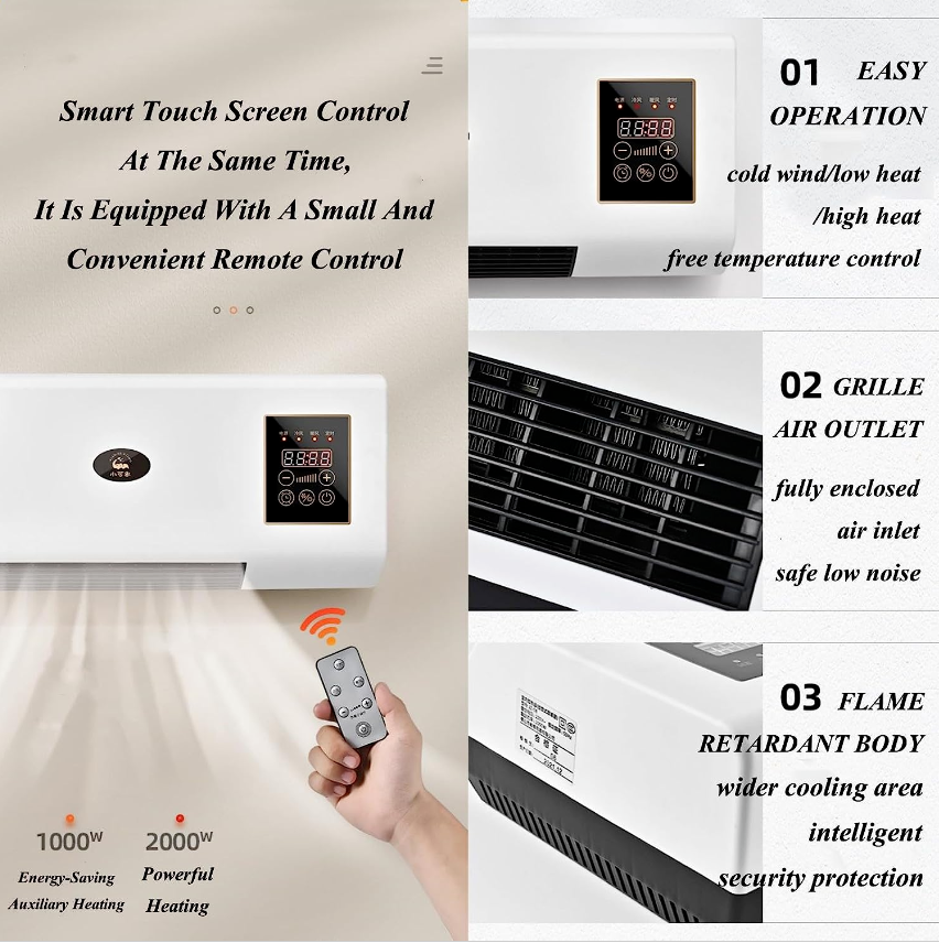 • 【MULTI-FUNCTIONAL DESIGN】The wall unit air conditioner can be used not only as an air conditioner for cooling (natural wind) but also as a heater for heating to meet the needs of different seasons. Note: This product can not be cooled, blowing natural wind and hot air.