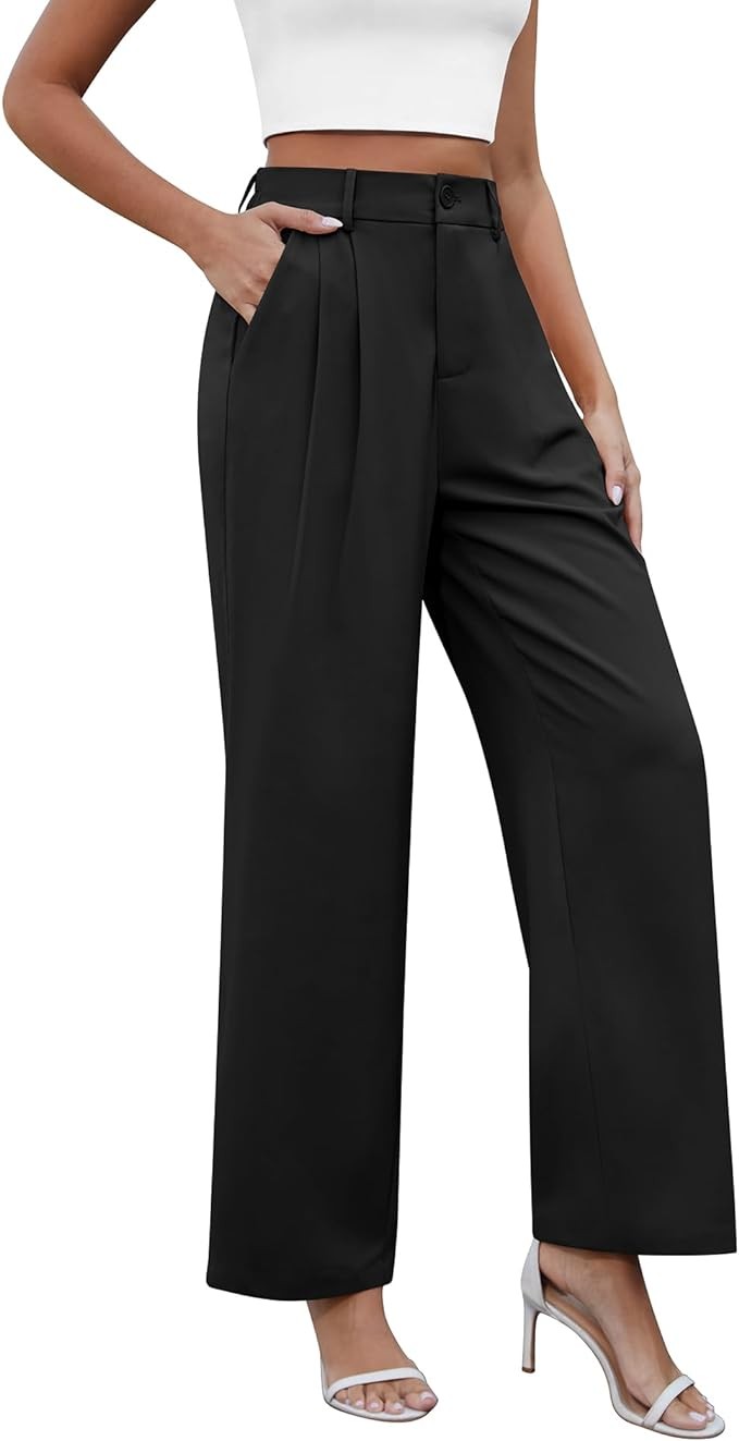 Style: Suit pants, Wide leg pants, High waist work trousers, Elastic back design, Button and zipper in front, Business work pants, Loose fit, Casual style, Wide leg pants with pockets.