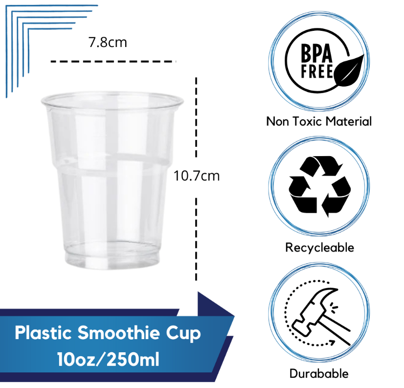 • 10oz (250cc) Clear Smoothie Cups and Domed or Flat Lids
