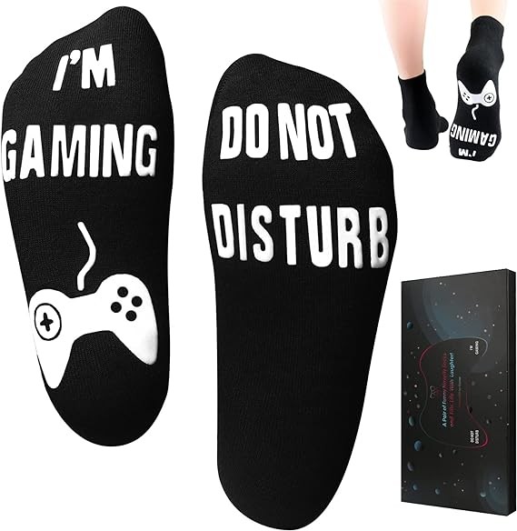 【Funny Novelty Gamer Socks For Boy Gifts】Do not disturb i'm gaming socks,Novelty socks is Anti-slip,with non skid rubber and funny words printed on each sock. Beware use caution when handling the socks if you have a latex allergy. Gaming socks are Machine Washable,hand washable with similar colors. Fathers Day Gifts gifts for dad who wants nothing,gamer gifts, anniversary gifts gift for boyfriend,funny socks for men,stocking stuffers for men.
