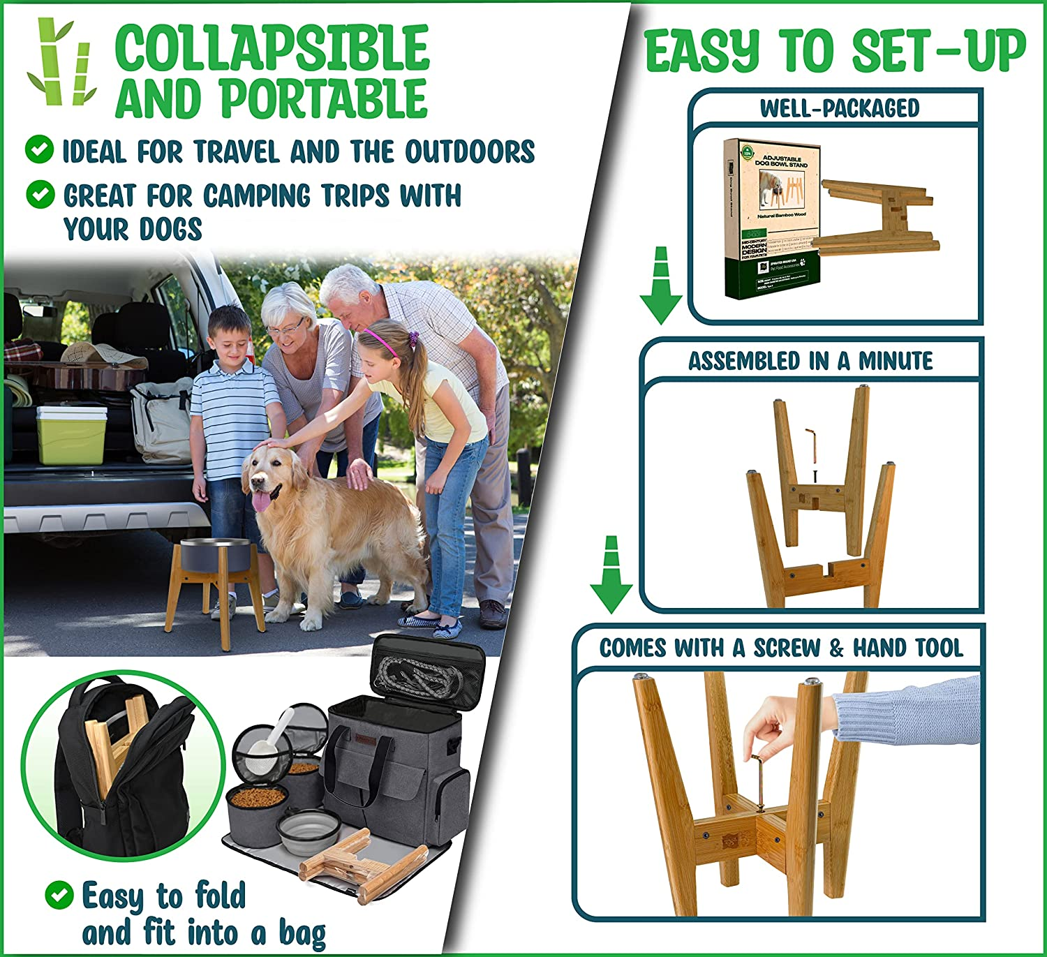 Dog Bowl Stand for Large Dogs - Height 14-Inch, Adjustable, Lockable Width