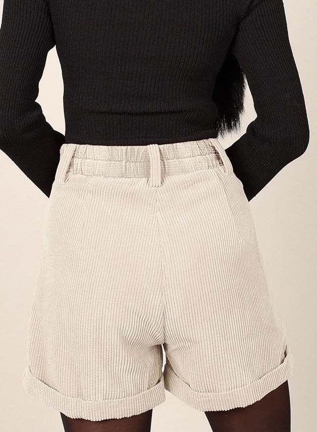 Loose around the thighs and comfy around the waist There are multiple ways to wear a high waist roll-up corduroy shorts. You can pair shorts with crop, tshirts, tops, blouses, jackets, coats, sweater, sweatshirts, sneakers or heels to complete casual look.