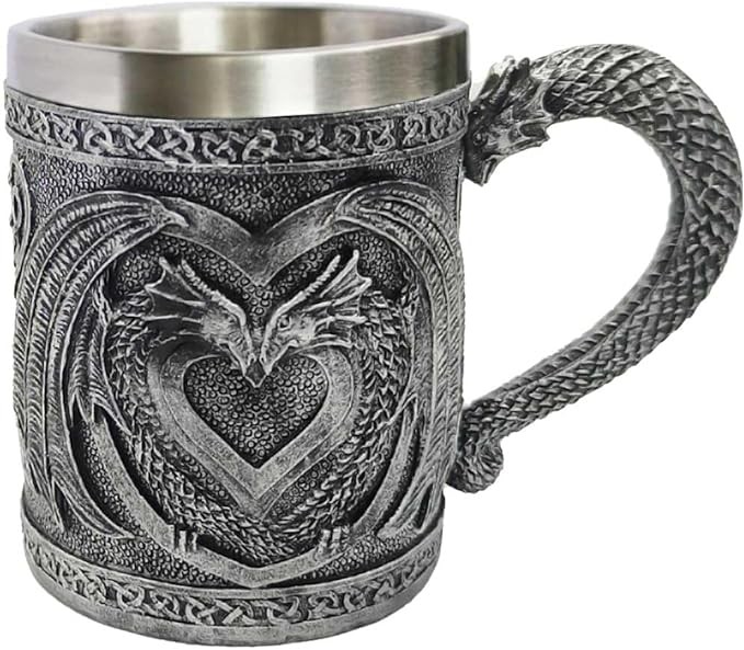 Dungeons and Dragons Gifts for Men/Women,Dnd Gaming Mugs-Novelty Gothic Game of Thrones Dragon Mug Cup for Medieval Party Decorations and Lovers-Stainless Beer Tankard Mug Double Dragon Coffee Mug
