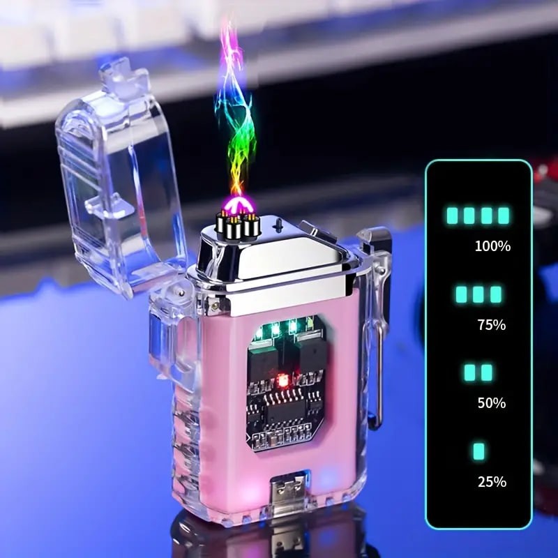 Electronic Pulse Rechargeable Lighter With Flashlight, Portable Double-arc Cigarette Lighter, Christmas Gift Birthday Gift