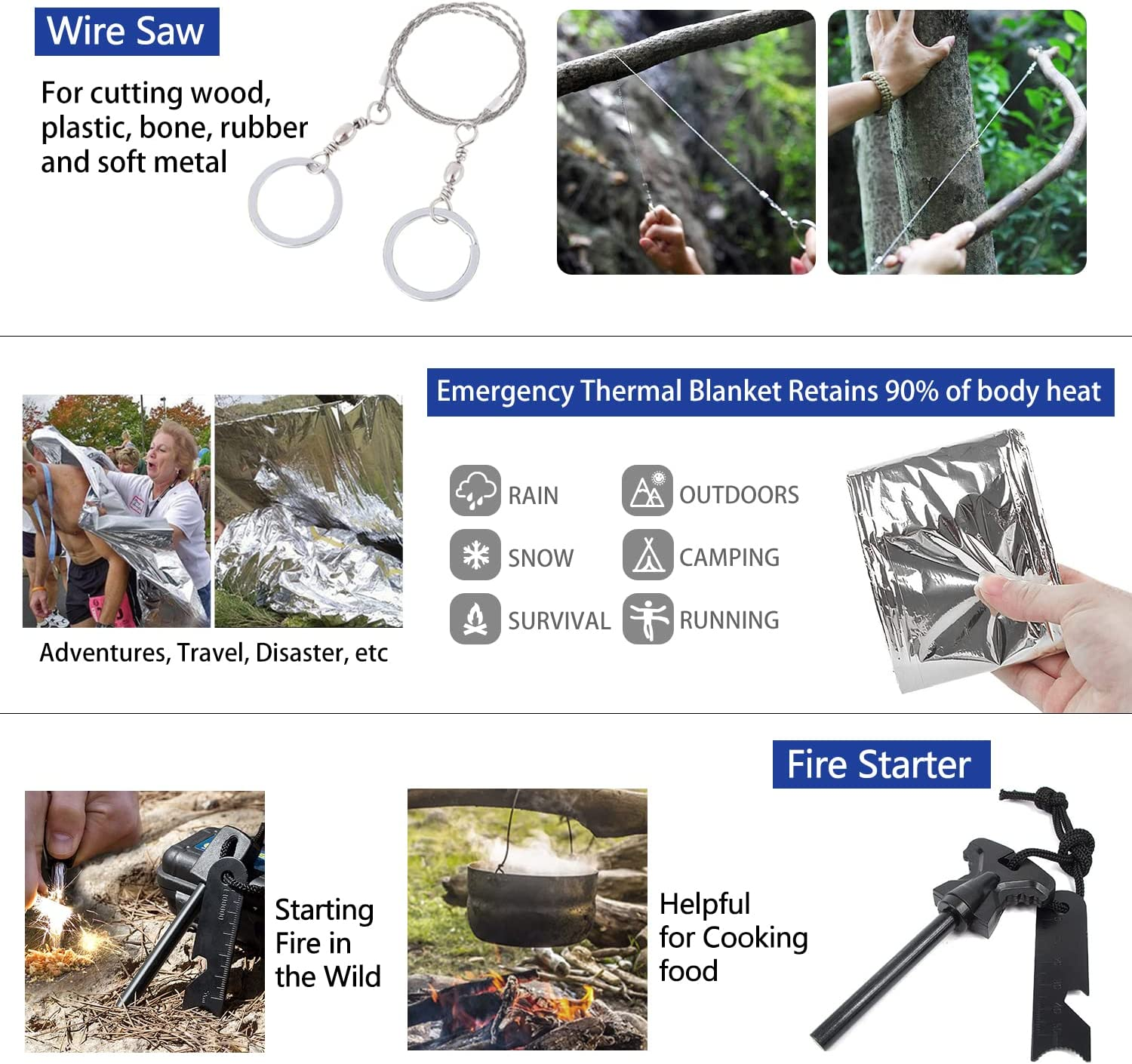 Emergency Survival Kit 176Pcs Gifts for Men Dad Husband Survival Gear Tool Kit S