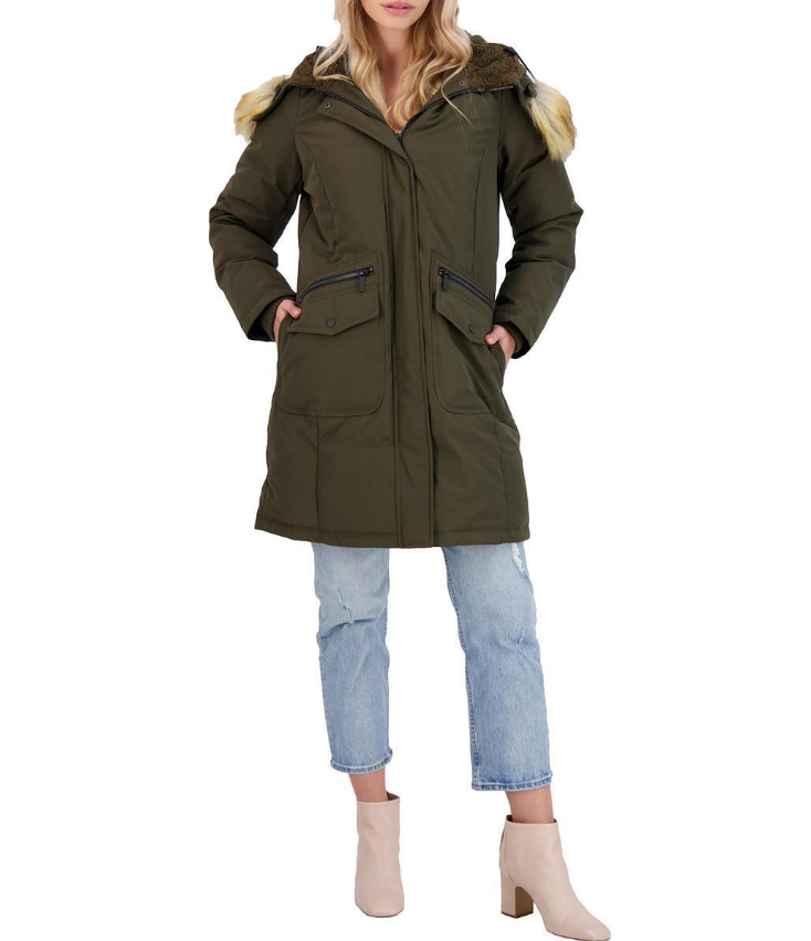 French Connection Women's Down Fill Mid-Length Parka with Faux Fur Trim Hood