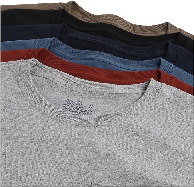 Fruit of the Loom Men's Eversoft Cotton Short Sleeve Pocket T-Shirts, Breathable & Tag Free