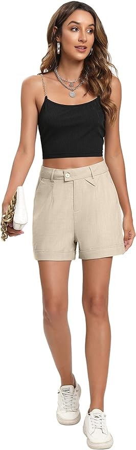FUNYYZO Women Linen Wide Leg Shorts Summer Casual Comfy Long Walk Short