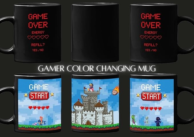 • HEAT SENSITIVE MAGIC MUG – After adding your favorite hot coffee, tea, or beverages into this mug, it appears with the quote "Gamer over” on both sides