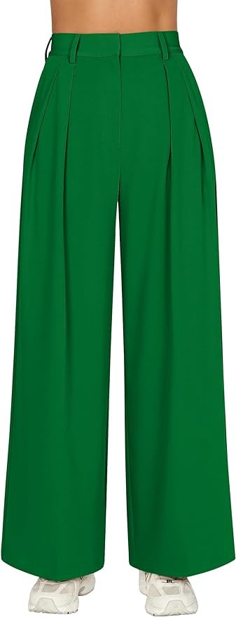 • Match: Wear casual high waisted wide leg pants with heels for a chic, sharp style, or take it down to the street with some classic white sneakers. It's also a flowy work dress pants for women that you can actually wear to business the office.