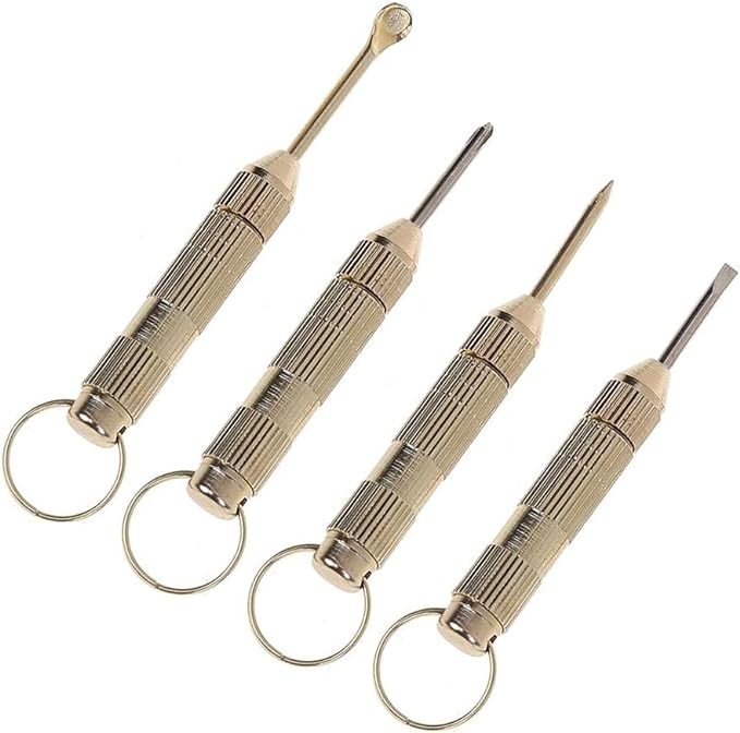 Gold 4 in1 Mini Portable Golden Opener Screwdrivers Ear Pick Ear Cleaner Keychain Kit Fashion Pro