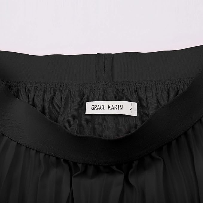 GRACE KARIN Women High Elastic Waist Pleated Chiffon Skirt Midi Swing A-line Skirts