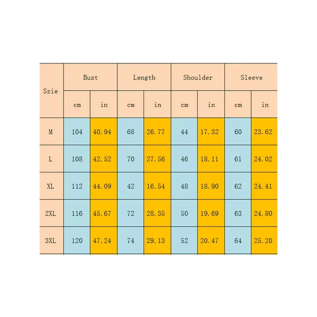 XXXL Length: 29.92 Bust: 47.24 Sleeve: 25.20 Shoulder: 20.47