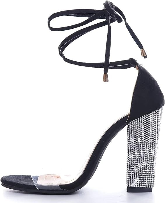 • High-heeled sandals Name: Women’s Gold High Heels Sandals with Rhinestone Ankle Strappy Clear Chunky Heels Dress Party Pumps Shoes/Women's Gladiator Ankle Strap Clear Rhinestone Lace up Chunky High Heel Strappy Sandals/Women's Pointy Toe Ankle Strap Rhinestone Covered Stiletto Heel Sandal