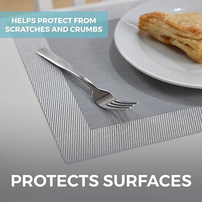 • PROTECT SURFACES FROM SCRATCHES: dine without worry; durable and reusable woven placemats help provide a protective barrier from scratches; mats help protect tables, counters and other surfaces from plates, flatware, cups and more